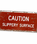 Merge safety with aesthetics using our metal distressed effect Caution Slippery Surface Sign. Its distressed finish lends a rustic charm while serving as a vital warning for slippery floors.