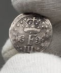 Obverse: A crowned "F" monogram, symbolizing Ferdinand III, with floral decorations on both sides. The Roman numeral "III" is below, denoting Ferdinand III.