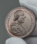 Obverse: Right-facing bust of Pope Pius VI wearing ornate vestments and skullcap, detailed with embroidered decoration.