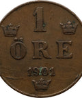 1857 LA 1 Öre Sweden Coin Oscar I Kungsholmen Mint
