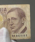 Obverse: Portrait of Guglielmo Marconi (1874–1937), Italian inventor and pioneer of wireless telegraphy, at right. At center, ornate guilloche patterns and watermark area featuring security emblem. Coat of arms of Italy with winged lion symbol included. Denomination “2000 LIRE DUEMILA” at top left and “BANCA D’ITALIA” at bottom. Serial number “GA 642515 E” printed twice in black.