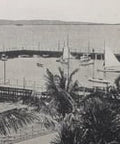 This postcard captures a scenic view of the bay as seen from the Esplanade in Durban, South Africa, during the early 20th century.
