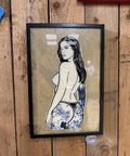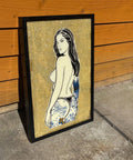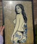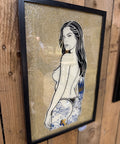 Hand painted on glass, 23ct gold leaf and super metallic gold glitter. This is a one of one piece, framed in a black frame which makes the gold really pop!