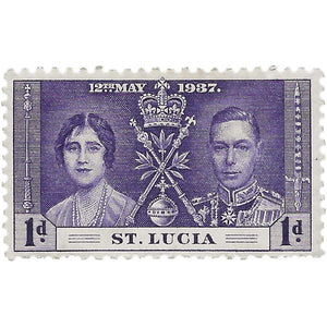 1937 1d Saint Lucia Stamp King George VI and Queen Elizabeth