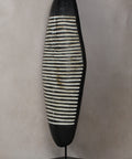 The Bamun shield bridges the gap between ancient cultural heritage and contemporary design. Its neutral tones and strong linear movement allow it to complement a variety of styles, from Biophilic and Japandi to Modern Industrial.