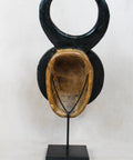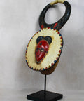 The very characteristic, round-shaped “lunar” kplekple mask is surmounted by two horns. It is used for celebrating peace and joy.