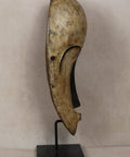 Well known for their reliquary figures the Fang also danced finely sculpted masks during a number of ritual activities. Among the Fang, white-painted masks identified with the Ngil society are known for their elegant abstractions of the human face. Ngil masks have been described as having a 'heart-shaped face' due to the facial features emphasizing refined curves of the orbital ridges above the eyes and the prominent line of the long tapering nose that ended above a discretely mouth carved at the bottom of the chin that completes the abstraction of the face. The Fang people used masks in their secret societies. Members of this male society wore the Ngil masks during the initiation of new members and the persecution of wrongdoers. Masqueraders, clad in raffia costumes and attended by helpers, would materialize in the village after dark, illuminated by flickering torchlight.
