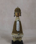 Namchi/Namji dolls are carved from African Rosewood, a legume tree native to the Democratic Republic of Congo, Cameroon, Gabon and Equatorial Guinea. A single block of African Rosewood wood is hand carved into a geometric shape and decorated with multi coloured beads, metals, fibre, cowrie shells, coins, and even leather. Each doll is carved with a unique stature and facial expression. Unadorned dolls made by blacksmiths are played with by young children.