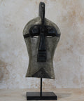The Songye mask is an extraordinary and culturally significant art piece originating from the Songye people of the Democratic Republic of Congo. These masks are characterized by their iconic features, including a highly arched forehead and prominent eyes, all meticulously carved from wood.