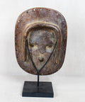 The Teke origin can be traced back to the 15th century. Teke are a widely scattered people. They are quite resourceful and employ a variety of means to make a living. They farm, hunt and fish, and actively seek to trade any surplus they might end up with. The artworks of the Teke consist mainly of small fetish statues for personal use, and larger fetish statues for use by the diviner or chief during important village ceremonies. The Teke or Kidumu people are well known for their Teke masks, which are round flat disk-like wooden masks that have abstract patterns and geometric motifs with horizontal lines that are painted in earthly colours, mainly dark blue, blacks, browns and clays. The traditional Teke masks all have triangle shaped noses.