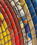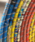 These baskets are a little different to the standard natural design, instead of the natural brown colours these baskets are woven with recycled plastics and paper creating an explosion of colour for any interior wall project.