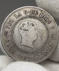 Legende auf der Rückseite: REY DE LAS ESPAÑAS RESELLADO 10 RS. ·S· ·M· ·R·