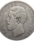 1883 B 5 Lei Romania Coin Silver Carol I Edge 6 Stars