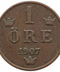 1907 1 Ore Sweden Coin Oscar II