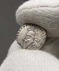 Rückseite: Bogenschütze (Arsakes I) rechts auf dem Thron sitzend, Bogen haltend.