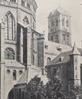Diese Postkarte zeigt die majestätische Gereonskirche in Köln, ein architektonisches Meisterwerk, das sowohl romanische als auch mittelalterliche Designelemente widerspiegelt. Die Postkarte hebt die markante zehneckige Kuppel der Kirche hervor, eine der größten ihrer Art in der westlichen Welt, und die Zwillingstürme, die sich anmutig über die umliegenden Gebäude erheben und Kölns reiche religiöse und architektonische Geschichte verkörpern.