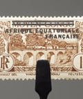 Französische Äquatorialafrika-Briefmarke 1936 1 französischer Centime Viaduc de Mindouli-Viaduct Mindouli überdruckt