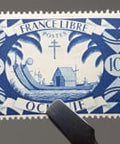 Französische Ozeanien-Briefmarke 1942, 10 französische Centime, altes Doppelkanuboot
