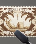 Französische Ozeanien-Briefmarke 1942, 5 französische Centime, altes Doppelkanu