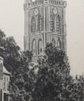 Diese Postkarte zeigt die Église Saint-Éloi in Hazebrouck, Frankreich, mit ihrem markanten neugotischen Glockenturm, der die Skyline dominiert. Die Postkarte fängt eine bezaubernde Straßenszene ein, mit Menschen, die die Kopfsteinpflasterstraße entlangschlendern, gesäumt von traditionellen Stadthäusern, die das flämische architektonische Erbe der Region widerspiegeln. Geschichte.