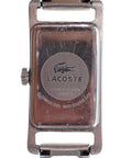 Pre-owned Lacoste stainless steel ladies’ wristwatch, model L.C 05.3.14.0006 (ref. 1053868). Features a sleek rectangular dial with the classic Lacoste logo. The bracelet length is approximately 18 cm, which runs small, so please measure your wrist carefully before purchasing.