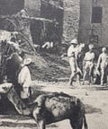 Diese Postkarte bietet einen geschäftigen Blick auf den Markt in Lahej, Aden (heutiges Jemen), einem wichtigen Handelszentrum während der britischen Kolonialzeit. Das Bild zeigt eine lebhafte Szene mit Händlern, Kamelen und Einheimischen, die sich zwischen einfachen Gebäuden und Lehmziegelhäusern versammelt haben, die für die Region charakteristisch sind. Der Markt diente als Umschlagplatz für Waren wie Textilien, Getreide und Vieh und spiegelt Lahejs historische Bedeutung im arabischen Handel wider.