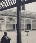 Diese Postkarte zeigt den Cour d'Honneur (Ehrenhof) des Palais de la Bahia in Marrakesch, Marokko. Der Palast wurde unter der Aufsicht von Si Moussa, einem Großwesir von Sultan Hassan I., erbaut und sollte Reichtum und Macht zur Schau stellen. Dabei wurden traditionelle andalusische und maurische Elemente integriert.