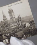 Diese Postkarte zeigt die beeindruckende Église Saint-Ouen, die sich über den Dächern von Rouen in der Normandie erhebt.