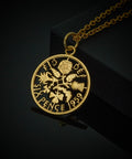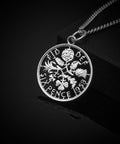 This necklace has been made using a Sixpence. The design of the coin shows the four emblems of the United Kingdom. The rose, shamrock, leek and thistle.