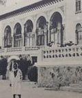 Diese Postkarte zeigt das elegante Le Belvédère Casino in Tunis, Tunesien, im frühen 20. Jahrhundert. Das Gebäude mit seinen großen Bögen, der verzierten Fassade und dem Turm war ein Wahrzeichen der französischen Kolonialarchitektur und vereinte europäische Designeinflüsse mit lokaler Ästhetik.