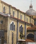 Das Colleoni-Denkmal, entworfen von Andrea del Verrocchio, ist ein berühmtes Reiterstandbild zu Ehren von Bartolomeo Colleoni, einem Condottiero (Militärführer) der Republik Venedig. Es steht prominent vor der Kirche und gilt als eines der schönsten Beispiele der Bronzeskulptur der Renaissance.