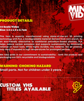 These are standing MiniVids which can be displayed/stand on their own or used to display on our special Miniature VHS Display Unit.