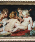 Monumental and high qualitative replic from the sec.half of 19th century of world-famous painting ” Christ and John Baptist as children and two angels”, executed by Peter Paul Rubens and Franz Snyders, the original work is in the Art Historical Museum in Vienna.