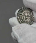 Rückseite: Viereckkreuz über gevierteltem königlichen Schild innerhalb eines Perlenkreises, Kreuz mit gegabelten Lilien.