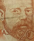 Vorderseite: Auf der rechten Seite ist ein Porträt von Leopoldo Alas „Clarín“, einem berühmten spanischen Schriftsteller und Kritiker, abgebildet. Der Nennwert „200“ ist in den unteren Ecken mit komplizierten Mustern dargestellt. Die Banknote enthält das Ausgabedatum „Madrid, 16 de Septiembre de 1980“ und die Unterschriften des Gouverneurs und anderer Finanzbeamter der Banco de España. Die Seriennummer „C7622417“ ist in der oberen linken Ecke in Rot gedruckt und auf der Rückseite wiederholt.