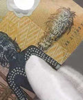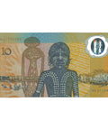 Reverse: Displays an Aboriginal youth with ceremonial body paint, alongside traditional Australian indigenous tools and artwork. In the background, motifs of Aboriginal rock paintings and the Morning Star Pole are shown. Transparent window with holographic portrait of Captain James Cook is repeated at right. Denomination “10” at corners.