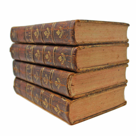 Schöner antiker Zustand, eigentlich gar nicht viel. Vollständig melierte Kalbsledereinbände; erhabene Streifen und vergoldete Verzierungen. Einfache Vorsatzblätter. Einige Stellen an den Buchrücken berieben; kleine Chips an den Enden der Stacheln. 2 Bände haben einen leichten Riss am vorderen Scharnier, die Platten sind immer noch fest. Etwas leicht stockfleckig, ansonsten sind die Seiten durchgehend sauber und fest.
