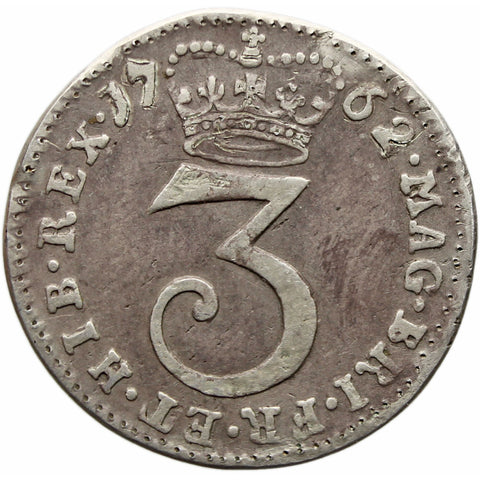 1762 3 Pence Maundy George III Münze UK Silber