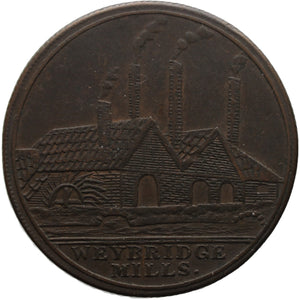 1812 One Penny Weybridge Mills Token Vereinigtes Königreich