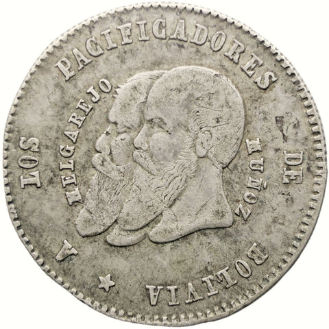 Legende auf der Vorderseite: A LOS PACIFICADORES DE BOLIVIA MELGAREJO MUÑOZ