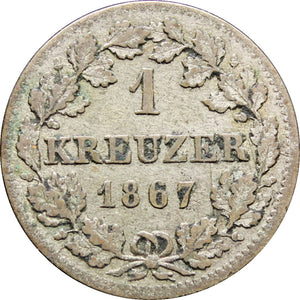 1872 1 Kreuzer Duchy of Hesse-Darmstadt Coin Louis III