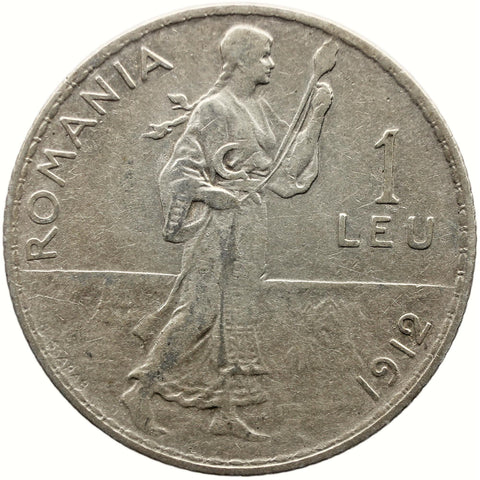 1912 1 Leu Rumänien Münze Silber Carol I Brüssel Mint