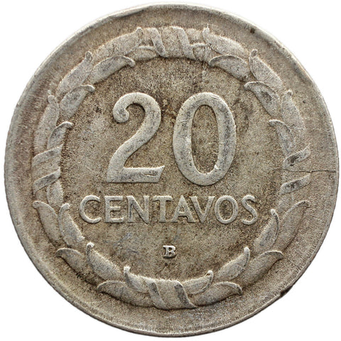 1945 Kolumbien 20 Centavos Münze Silber Bogota Mint