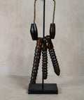 - Organic Textures: Strung on a sturdy, hand-twisted natural fiber rope, the deep amber-toned wood has been polished by years of handling, revealing a rich, authentic luster.