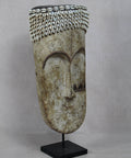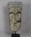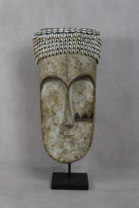 Well known for their reliquary figures the Fang also danced finely sculpted masks during a number of ritual activities. Among the Fang, white-painted masks identified with the Ngil society are known for their elegant abstractions of the human face. Ngil masks have been described as having a 'heart-shaped face' due to the facial features emphasizing refined curves of the orbital ridges above the eyes and the prominent line of the long tapering nose that ended above a discretely mouth carved at the bottom of the chin that completes the abstraction of the face. The Fang people used masks in their secret societies. Members of this male society wore the Ngil masks during the initiation of new members and the persecution of wrongdoers. Masqueraders, clad in raffia costumes and attended by helpers, would materialize in the village after dark, illuminated by flickering torchlight.