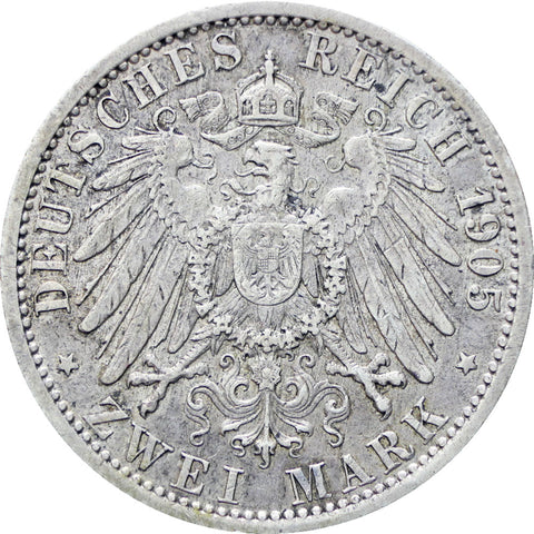 Rückseitenaufschrift: „DEUTSCHES REICH 1905 * ZWEI MARK *“