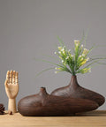 Add a touch of organic sophistication to your space with these handcrafted horizontal vases, featuring a striking radial texture and asymmetrical form. Designed to lie gracefully on a surface, their sculptural silhouette makes them perfect for minimalist floral arrangements or as standalone statement pieces. Available in rich wood-toned finishes, each vase brings warmth and texture to modern, rustic, or Japanese-inspired interiors. Whether displayed solo or as a set, these pieces invite calm, nature-inspired elegance into any room.