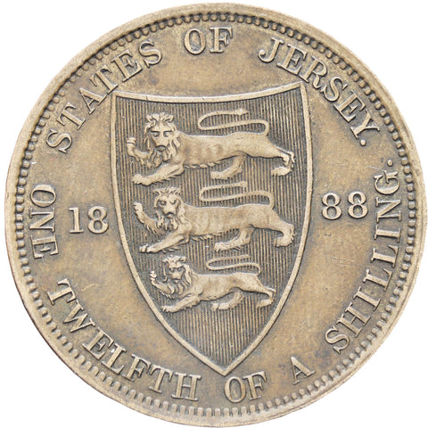 Aufschrift auf der Rückseite: „STATES OF JERSEY 1888 ONE TWELFTH OF A SHILLING“