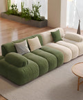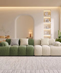 A minimalist, elegant addition to your living room furniture collection. This comfortable lounge sofa features a unique design, half in white and half in green, adding a fresh and modern aesthetic to any space. Sink into its soft, relaxing cushions and experience ultimate comfort and style. Perfect for both indoor lounging and outdoor patio use, the Riku Sofa effortlessly combines sophistication with laid-back charm.
