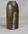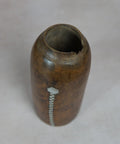 These ornate milk containers are masterfully hand-carved from a singular block of wood and accentuated with tin embellishments. These time-honored vessels have served as indispensable tools among the Tutsi people of Rwanda, as well as nomadic communities in the rural hinterlands of Burundi, Kenya, and Northern Tanzania. Originally devised for the conveyance of milk, water, honey, and provisions, these containers exude a versatile practicality.